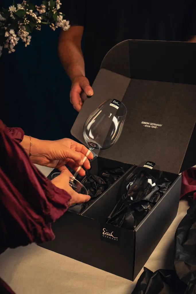 | Zusätzliche Varianten | 2 Bordeauxgläser Grand Cru 522/21 i.Geschenkkarton, 2 Burgundergläser 522/1 im Geschenkkarton, 2 Rotweingläser 522/2 im Geschenkkarton, Eisch Unity Sensis plus Rotweinglas 522/2 25221020, Weissweinglas 522/3 |
