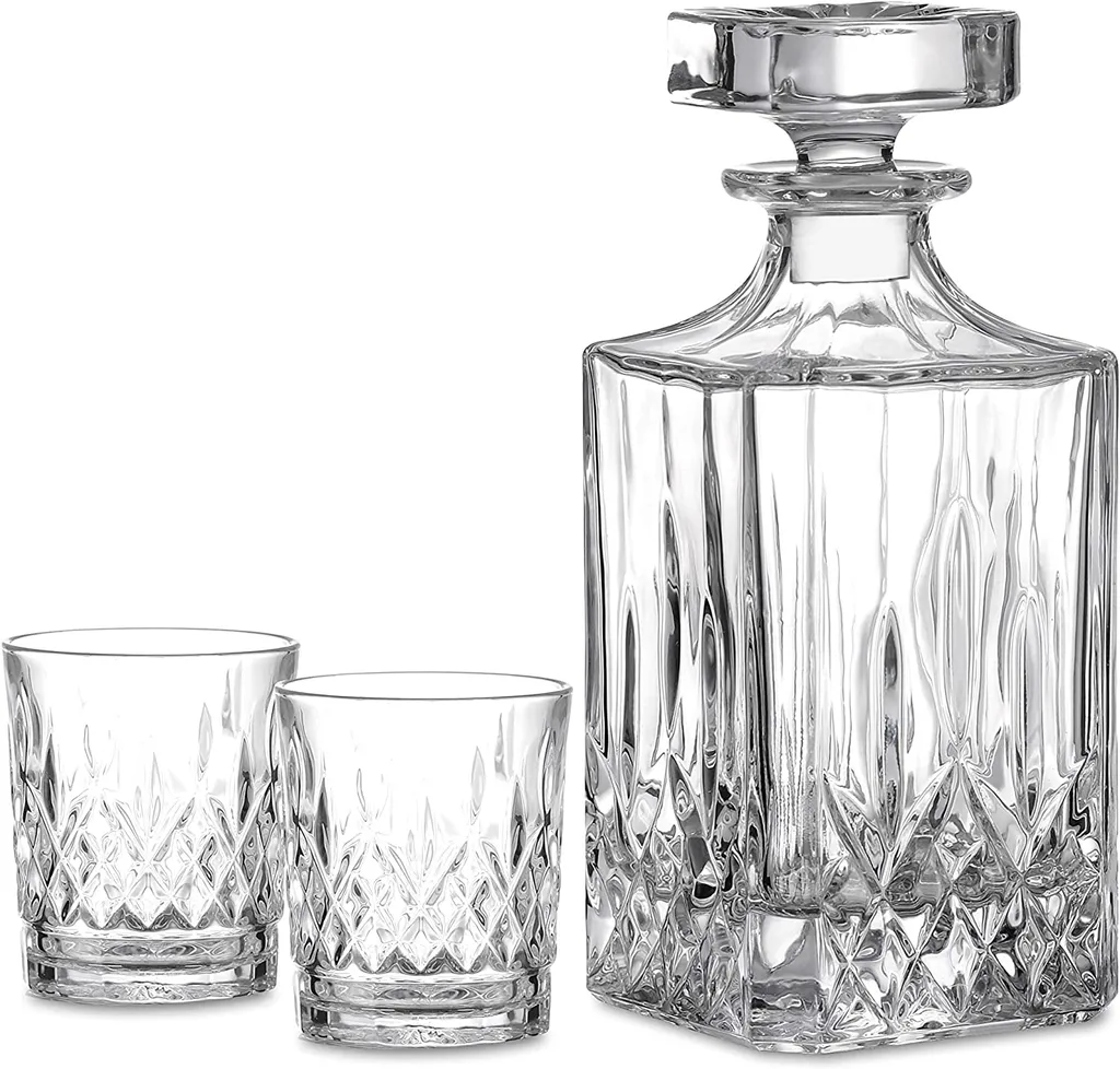 Amisglass Whiskey Karaffe Mit 2 Gläsern, Whiskey Set, 3-teilig, Whisky Dekanter 700ml Und Whisky Gläser 300ml 2 Stück, Kristallgläser & Longdrinkgläser