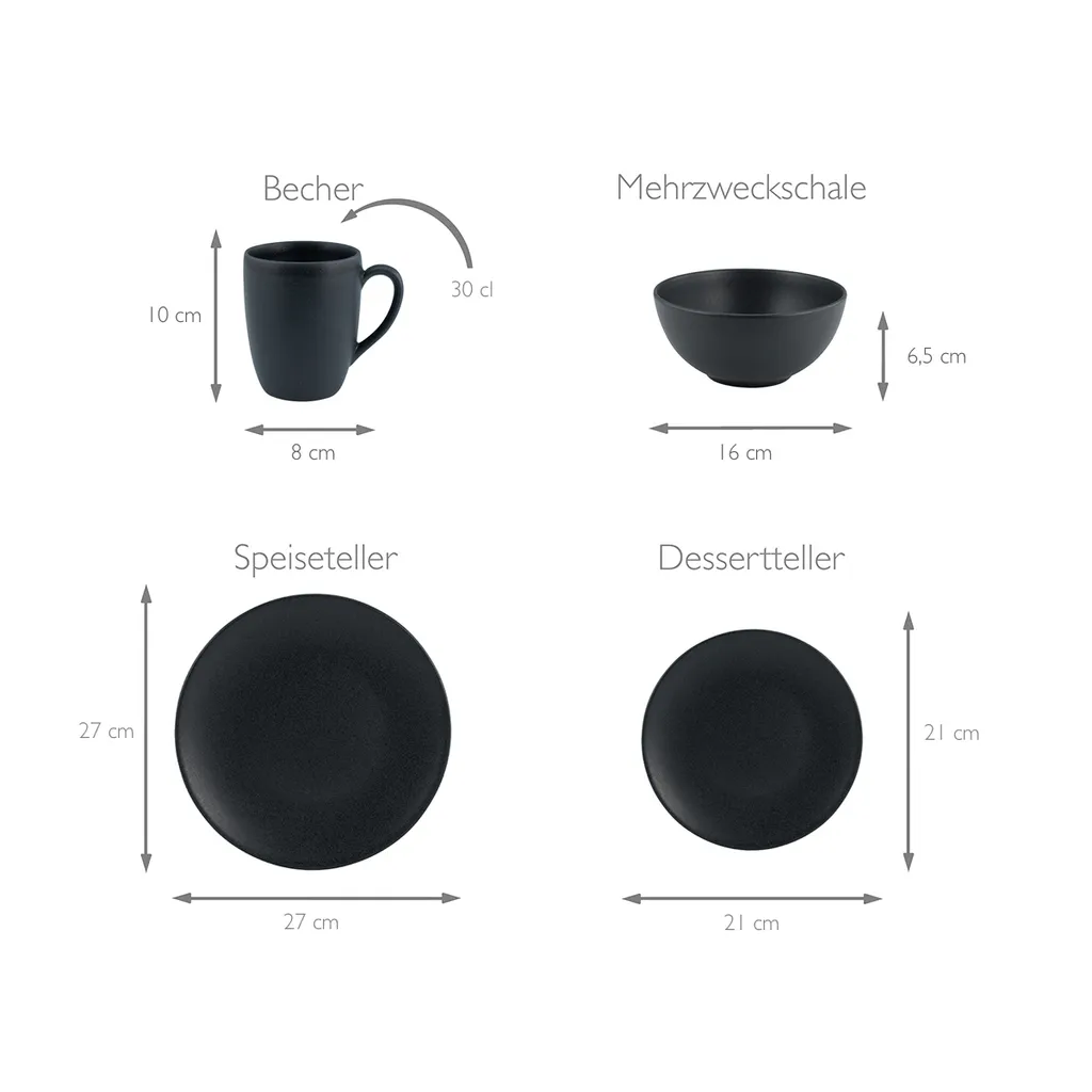 Schreibe die erste Rezension für „CreaTable 23145 Kombiservice Soft Touch Black Für 4 Personen, Steinzeug, Schwarz (1 Set, 16-teilig)“ Antwort abbrechen