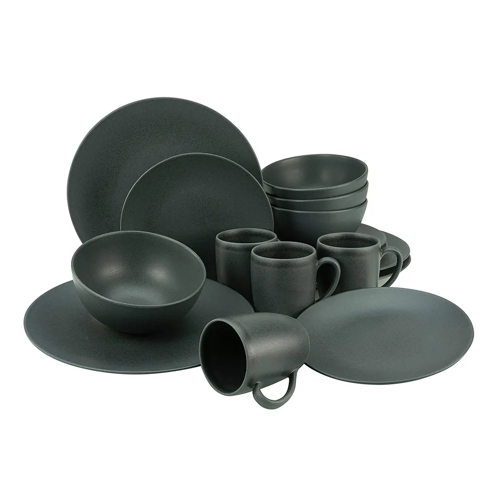 CreaTable 23145 Kombiservice Soft Touch Black Für 4 Personen, Steinzeug, Schwarz (1 Set, 16-teilig)