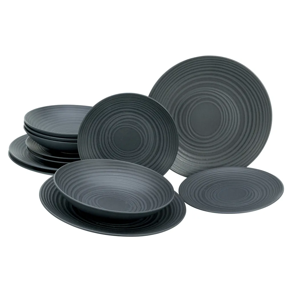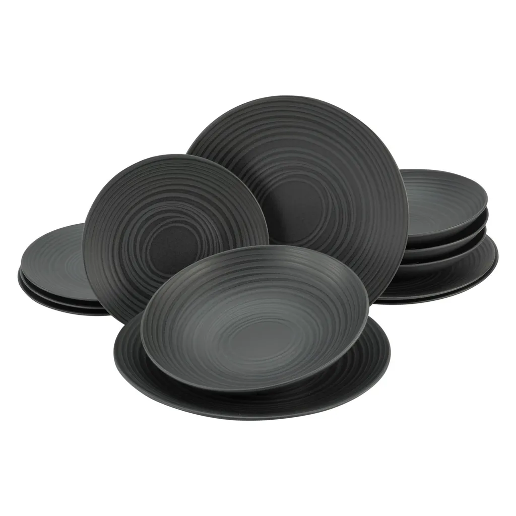 CreaTable 23205 Tafelservice Elements Collection Lava Stone Für 4 Personen, Steinzeug, Schwarz/grau (1 Set, 12-teilig)