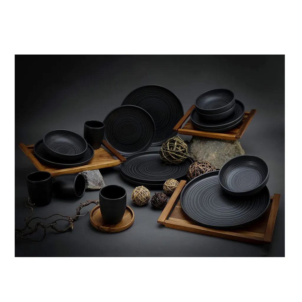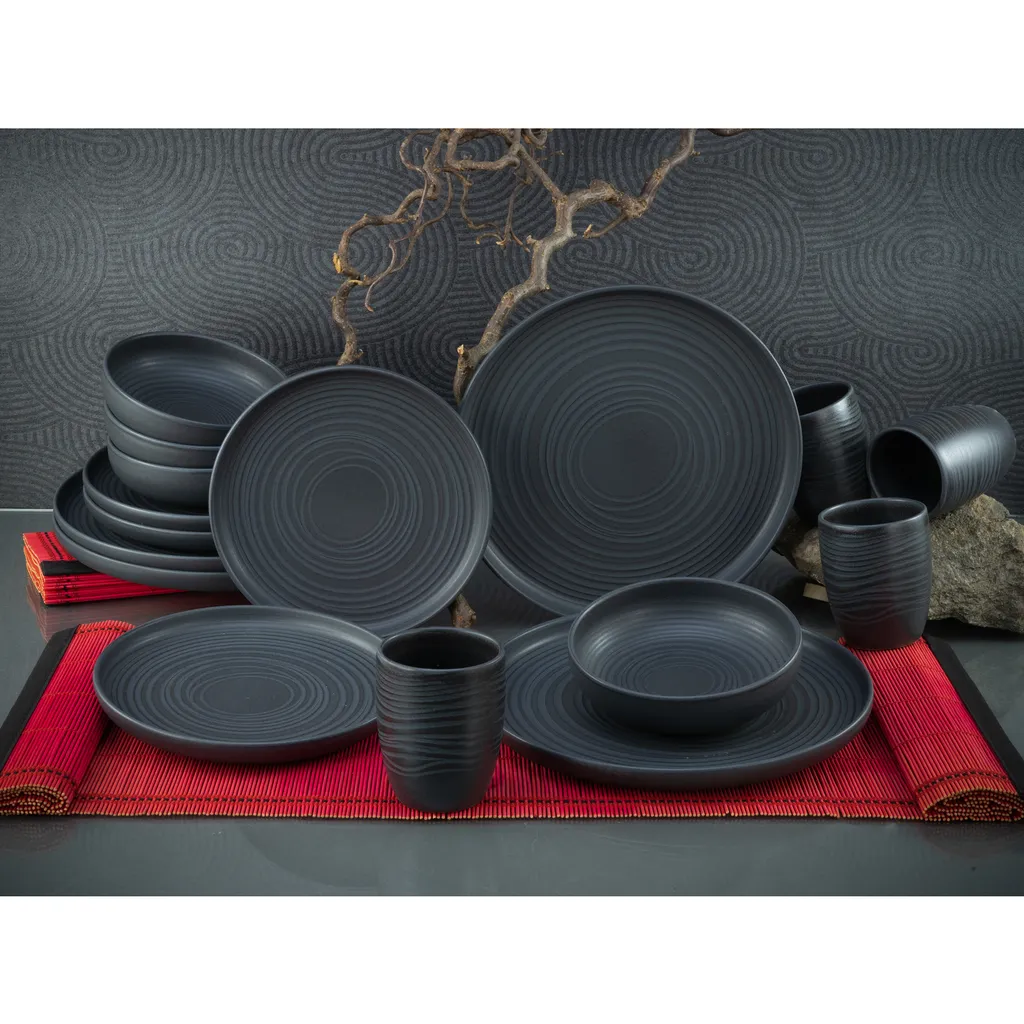 CreaTable 23860 Kombiservice Uno Für 4 Personen, Steinzeug, Schwarz (1 Set, 16-teilig)