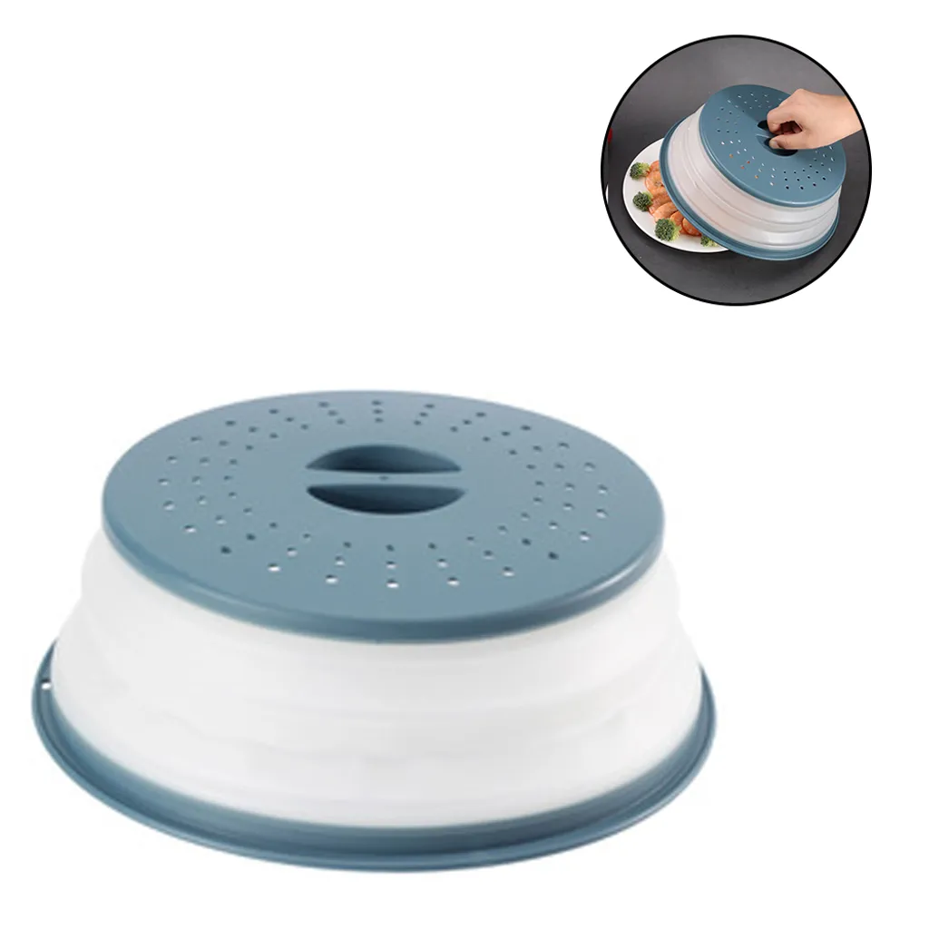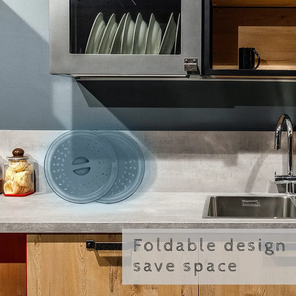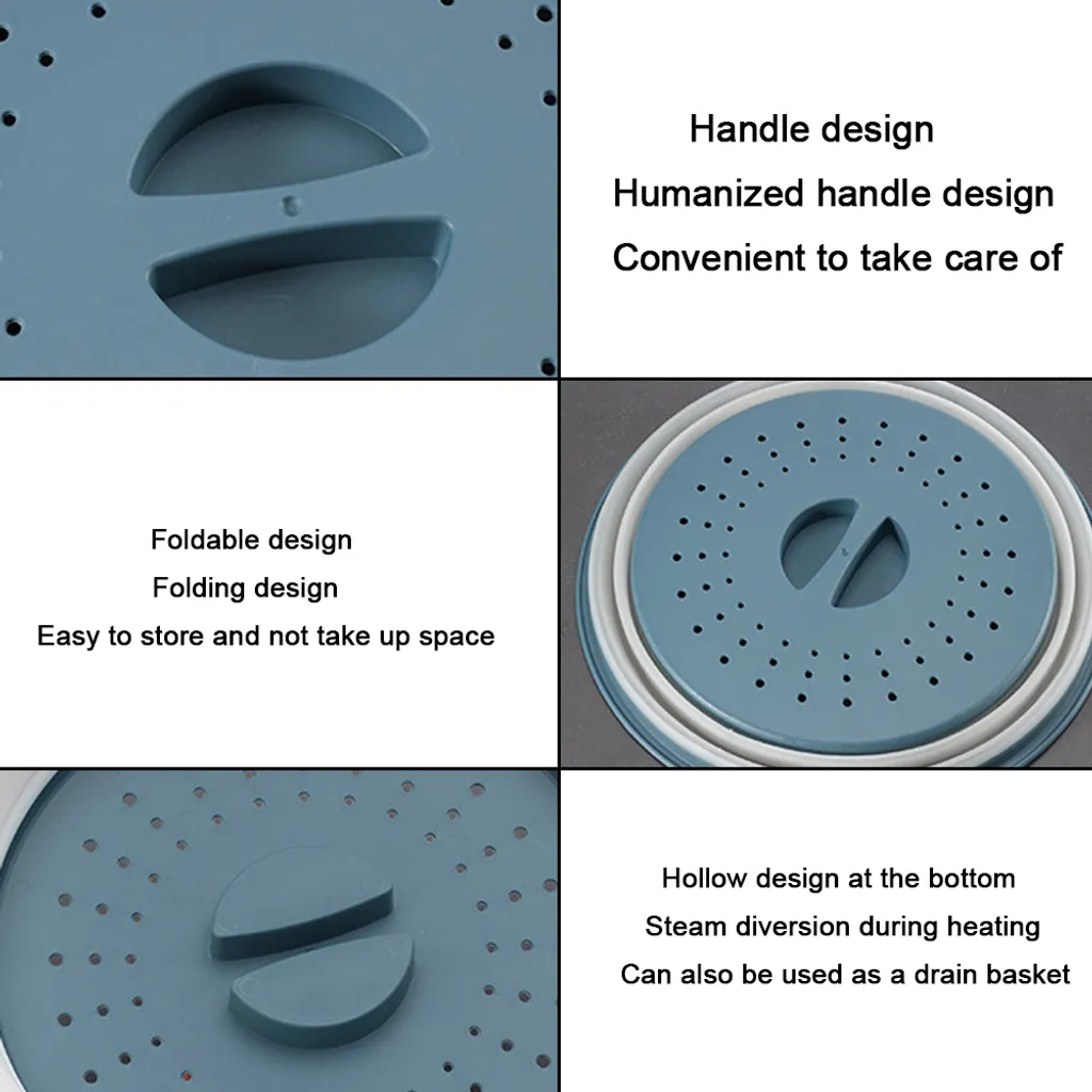 Faltbare Mikrowellen-Abdeckplatte Für Lebensmittel, Belüftet, Faltbar, Spritzwassergeschützt, Mikrowellen-Spritzschutz, BPA-freies Silikon & Kunststoff Und Spülmaschinenfest ,Ink-blue Colour