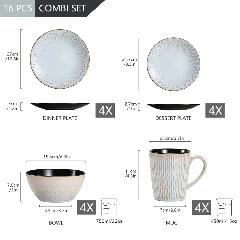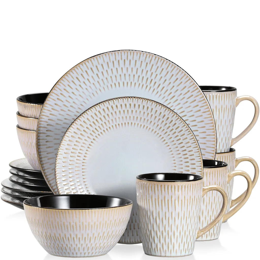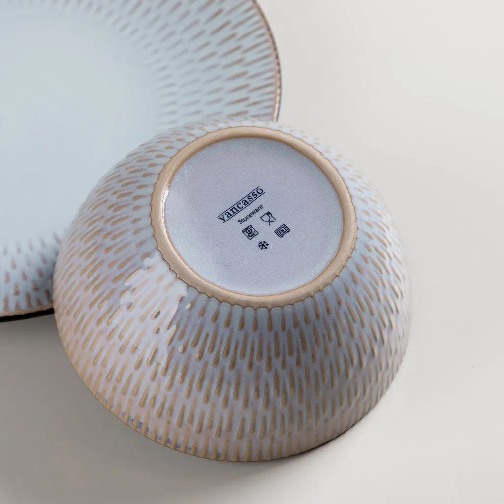 Kombiservice Steinzeug, Vancasso PLUVO Tafelservice, 16-teiliges Ess Geschirrset Mit Je 4 Speisetellern, Kuchentellern, Schalen Und Tassen Für 4 Personen