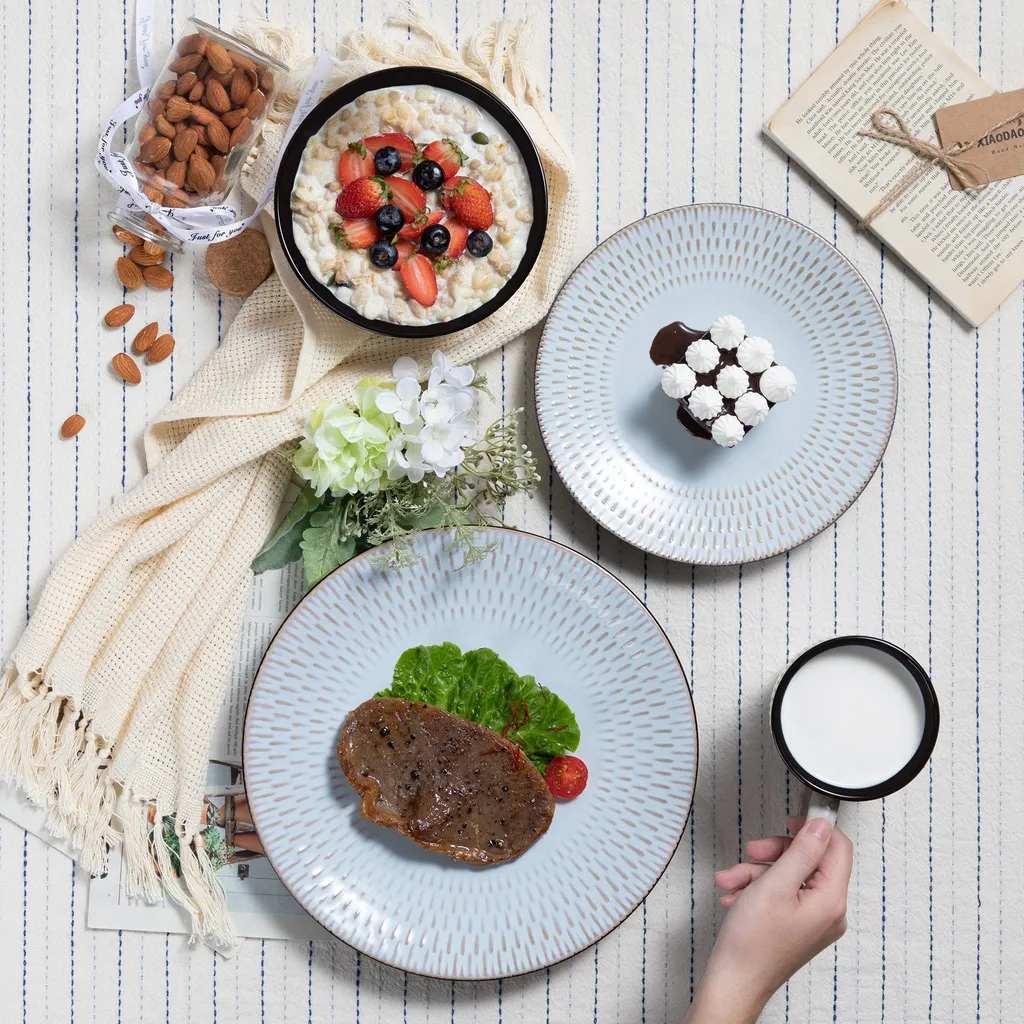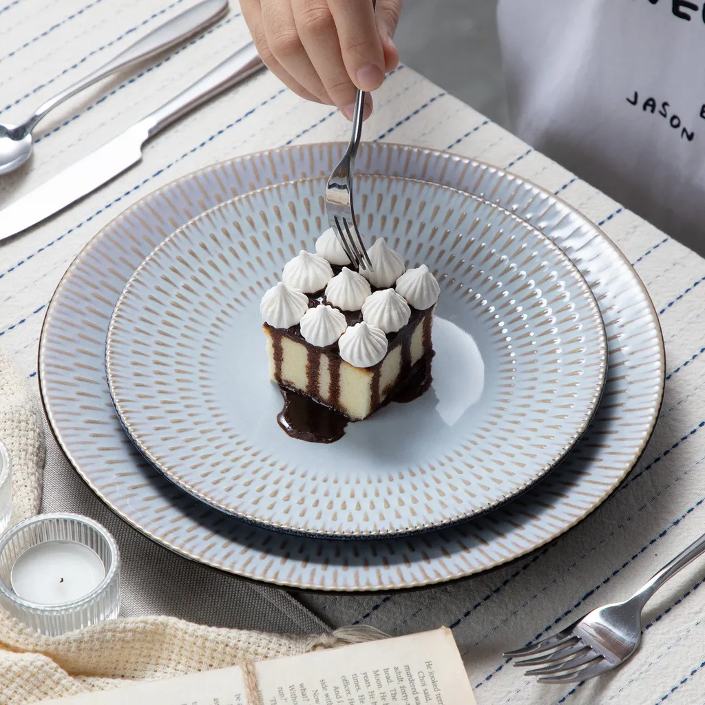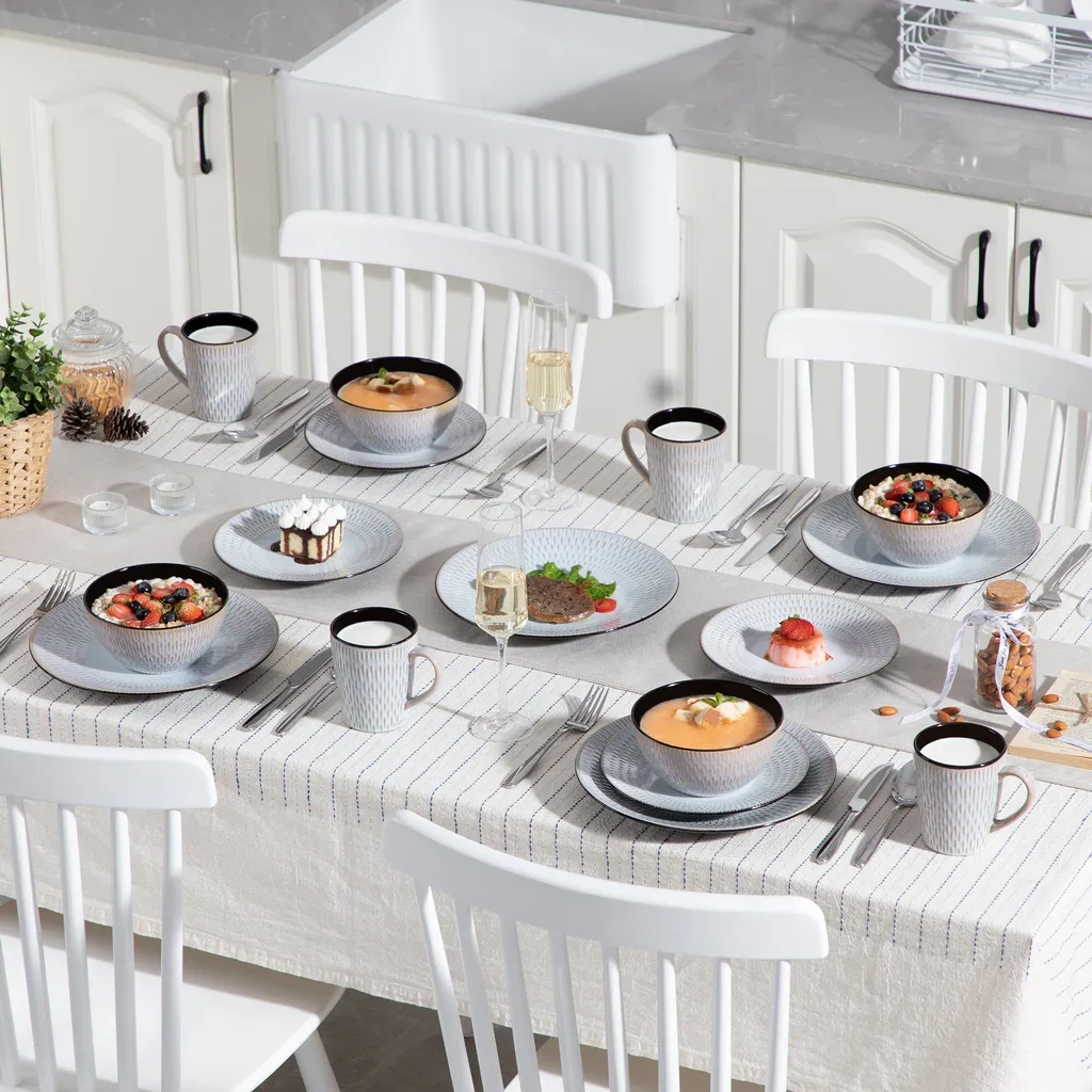 Kombiservice Steinzeug, Vancasso PLUVO Tafelservice, 16-teiliges Ess Geschirrset Mit Je 4 Speisetellern, Kuchentellern, Schalen Und Tassen Für 4 Personen