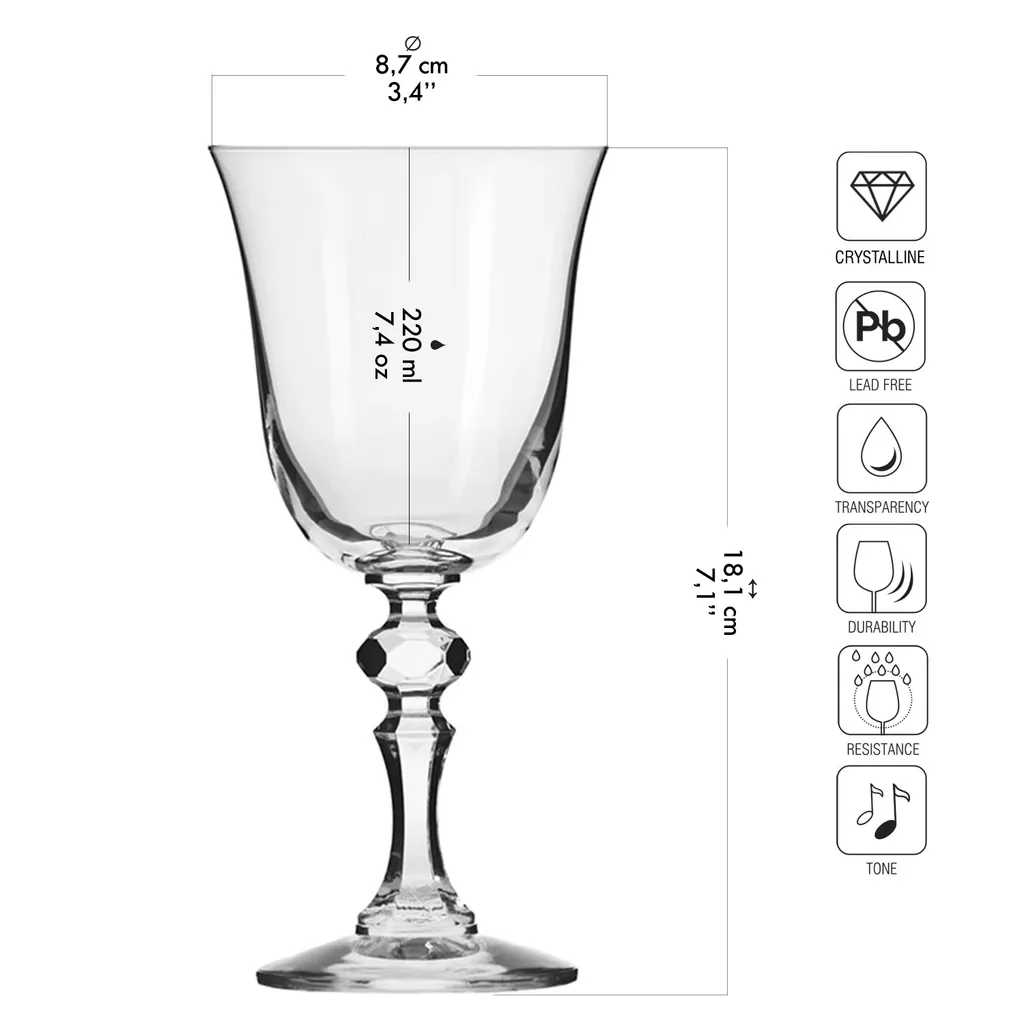 KROSNO Krista Kleine Rotweingläser, 6er-Set, 220 Ml