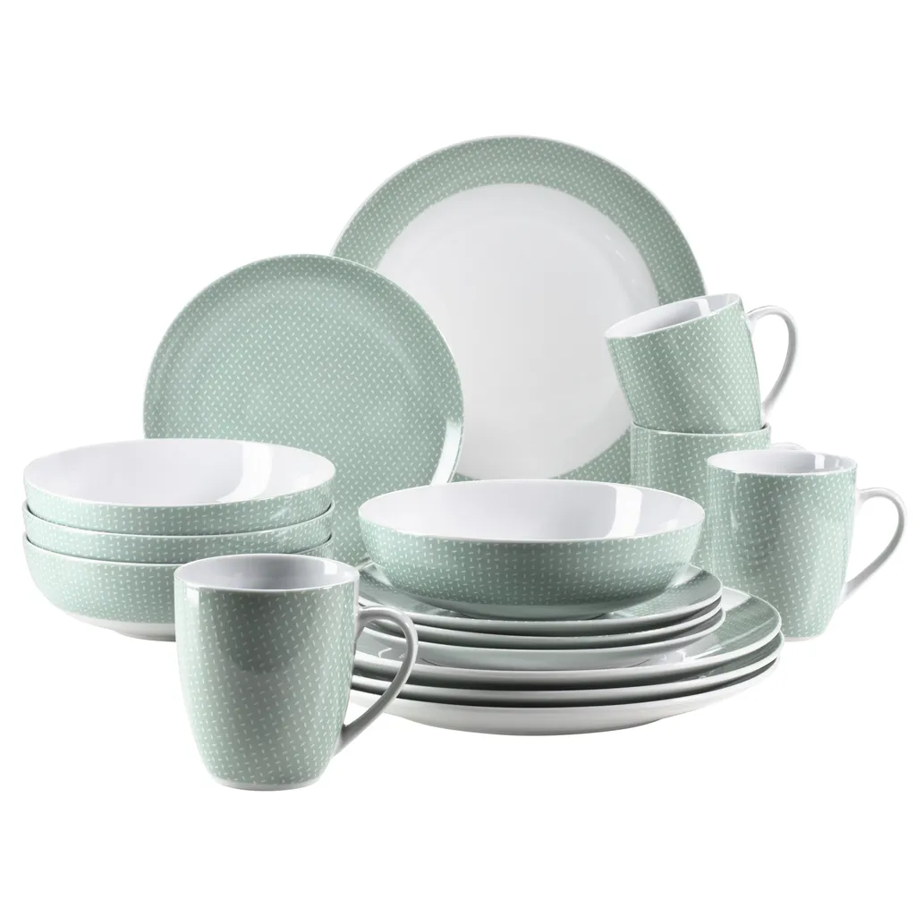 Mäser 931565 Kombiservice Kitchen Time II Für 4 Personen, Porzellan, Grün (1 Set, 16-teilig)