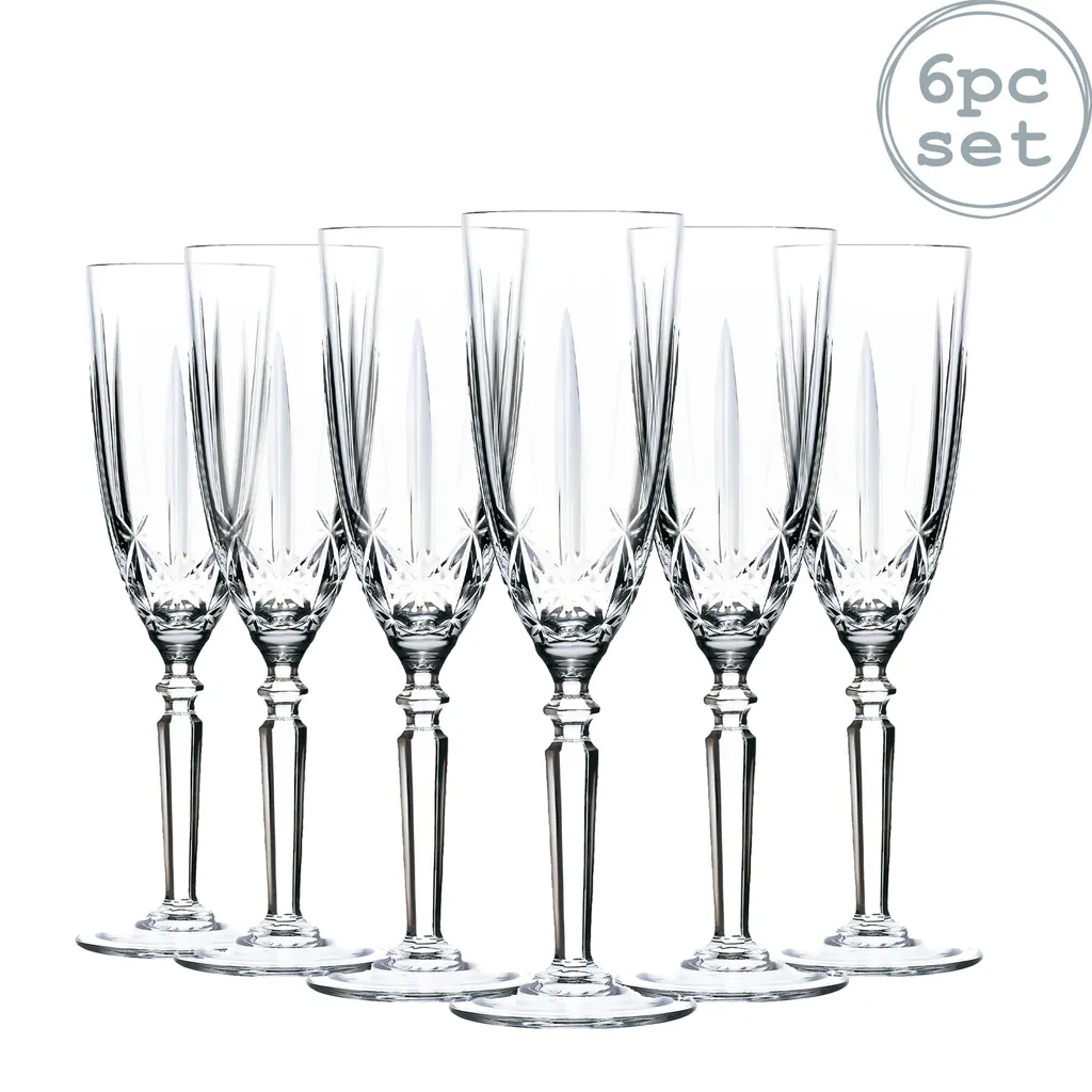 RCR Kristall Orchestra Cut Glas Champagner-Flöten-Gläser Set – 200ml – Packung Mit 6