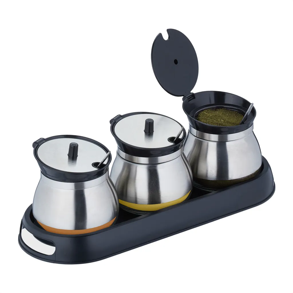 Relaxdays 3er Gewürzgläser Set Mit Tablett