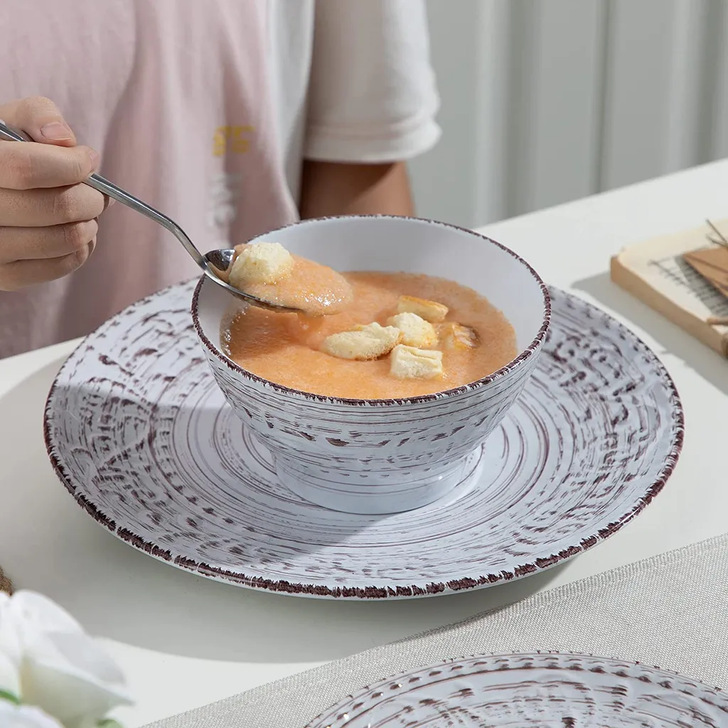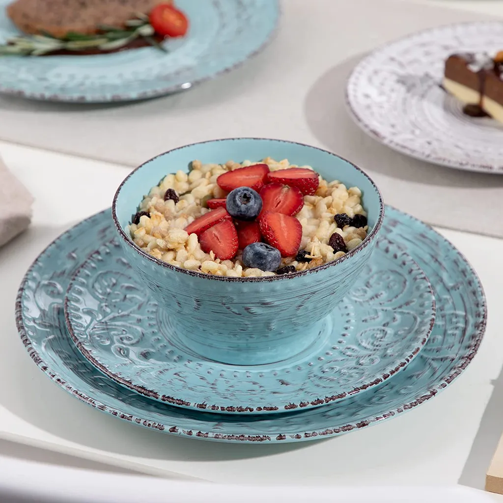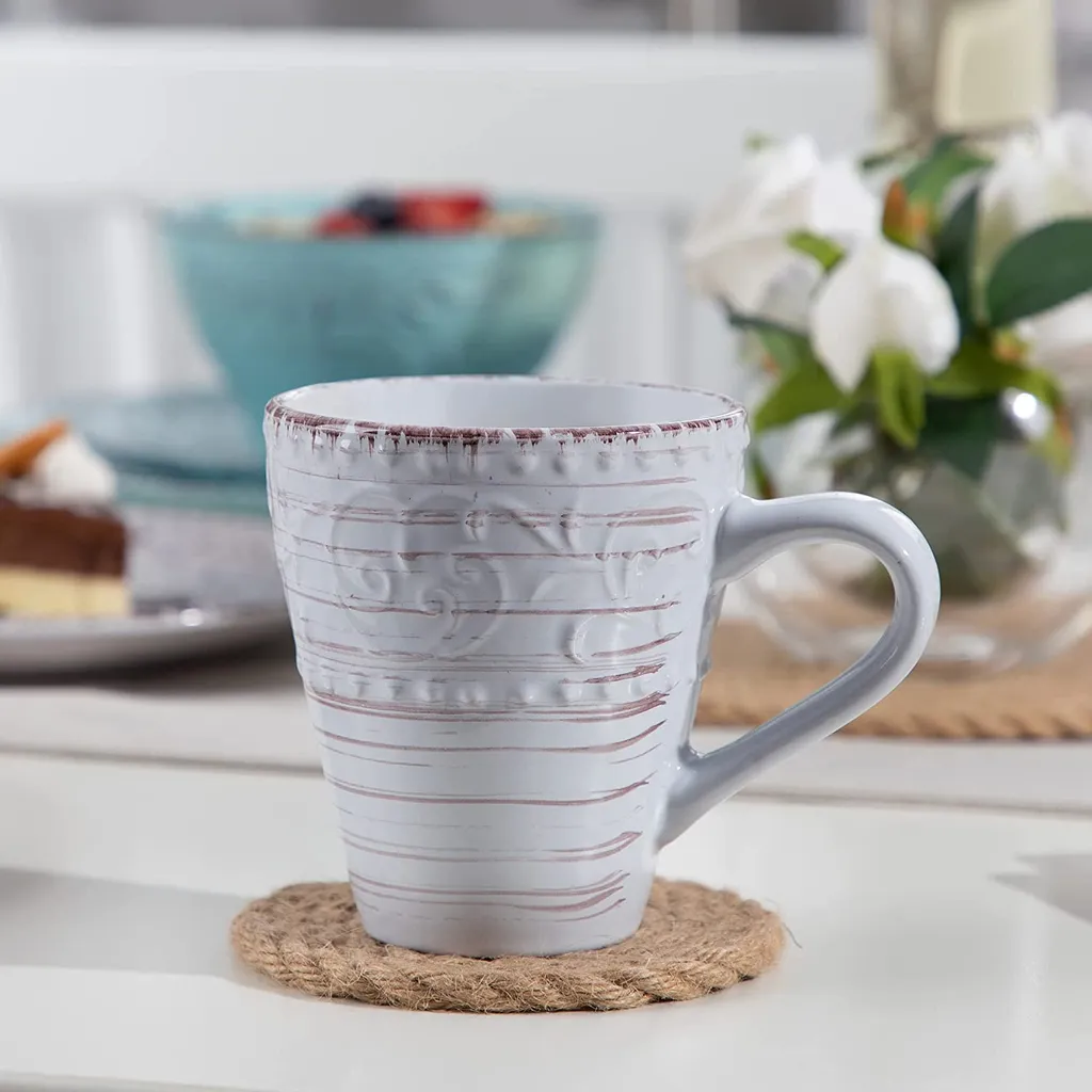 Tafelservice Steingut, Vancasso VINE Ess Geschirrset, 32-teiliges Kombiservice Mit Je 8 Speisetellern, Kuchentellern, Schalen Und Tassen Für 8 Personen, Geprägte Liane