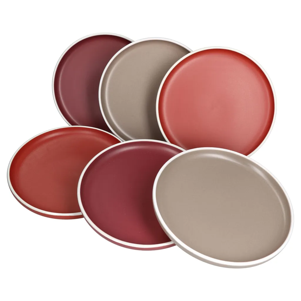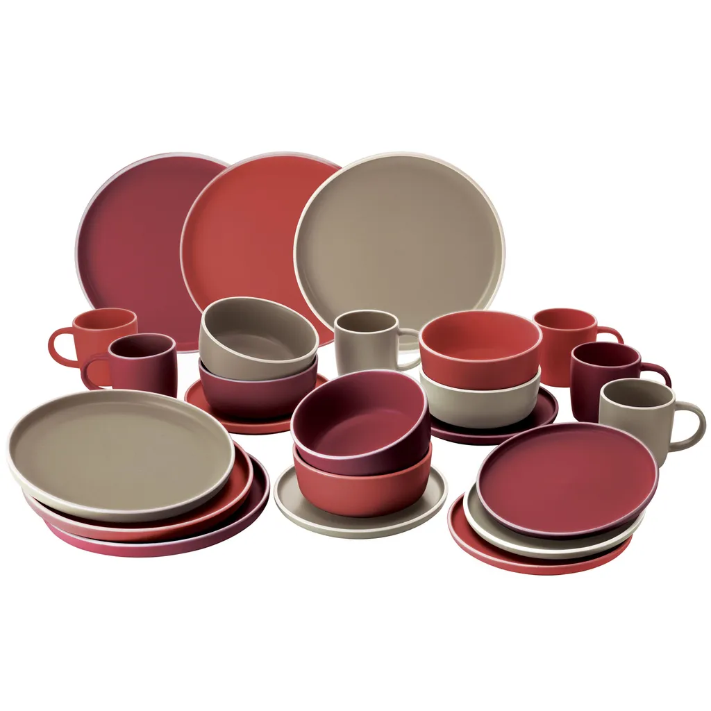 Van Well Liz 24tlg Kombi-Service 6 Pers. Steingut Sand Rot Terracotta Geschirrset
