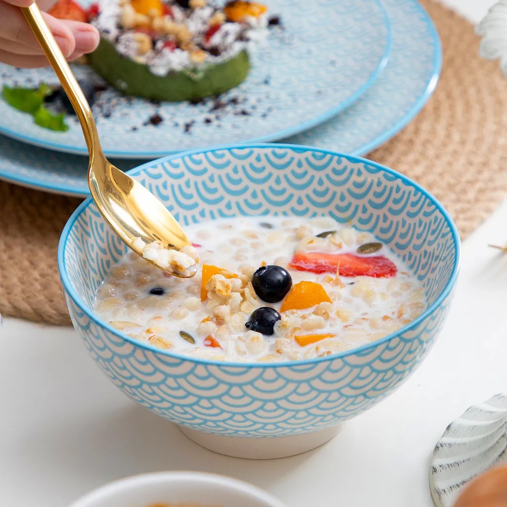 Vancasso Natsuki 16-teilig Porzellan Kombiservice, Mit Je 4 Speiseteller Ø 27 Cm, Dessertteller Ø 21,5 Cm, Müslischalen Ø 15,2 Cm Und Kaffeebecher 380 Ml
