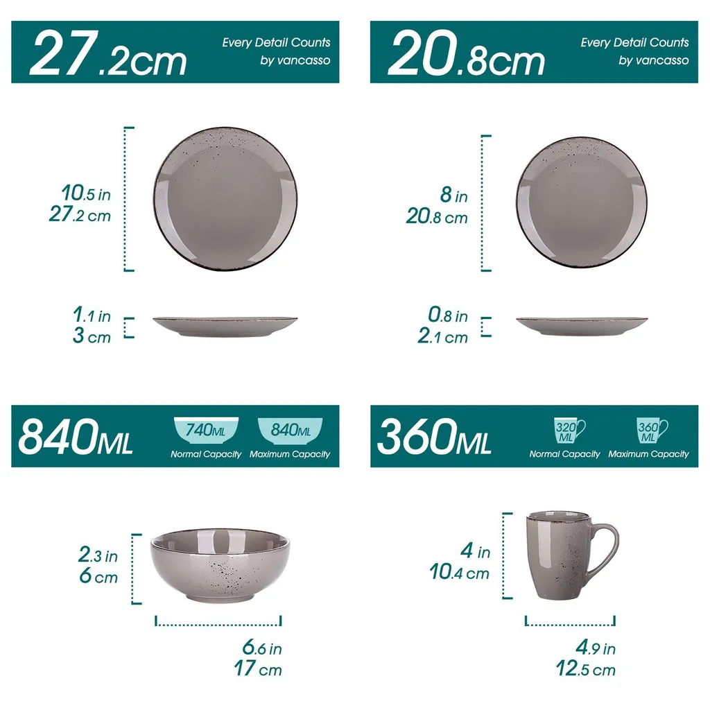 Vancasso Navia Jardin 16 Teilig Tafeiservice Set, Geschirrset Aus Steingut, Vintage Aussehen, Natur Design