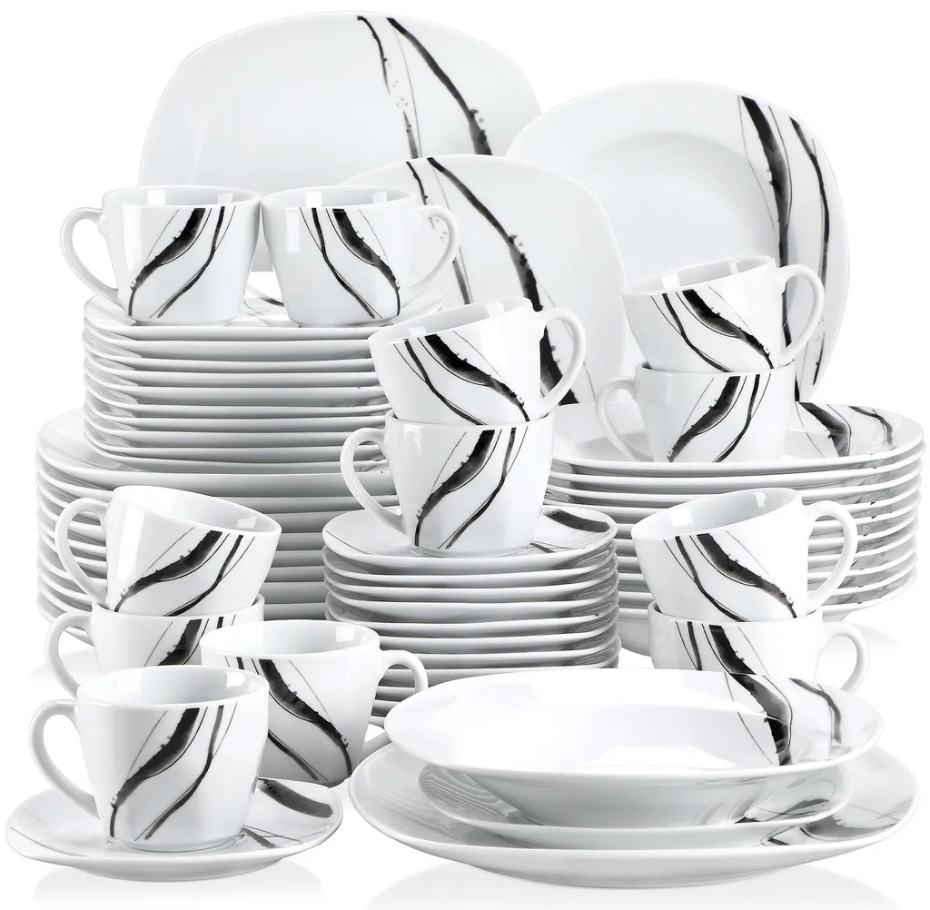 VEWEET Tafelservice ‚Teresa‘ Aus Porzellan, 60-tlg Kombiservice Mit Kaffeetassen 175 Ml, Untertasse, Dessertteller, Speiseteller Und Suppenteller, Komplettservice Für 12 Personen
