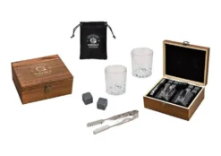 Whisky Geschenkset Nicht Nur Für Whisky Liebhaber:innen, 8 Granit Whisky Steine, 2 Whiskygläser, Eiswürfelzange Und Samtbeutel In Toller Holz Geschenkbox. Neidfaktor Inclusive